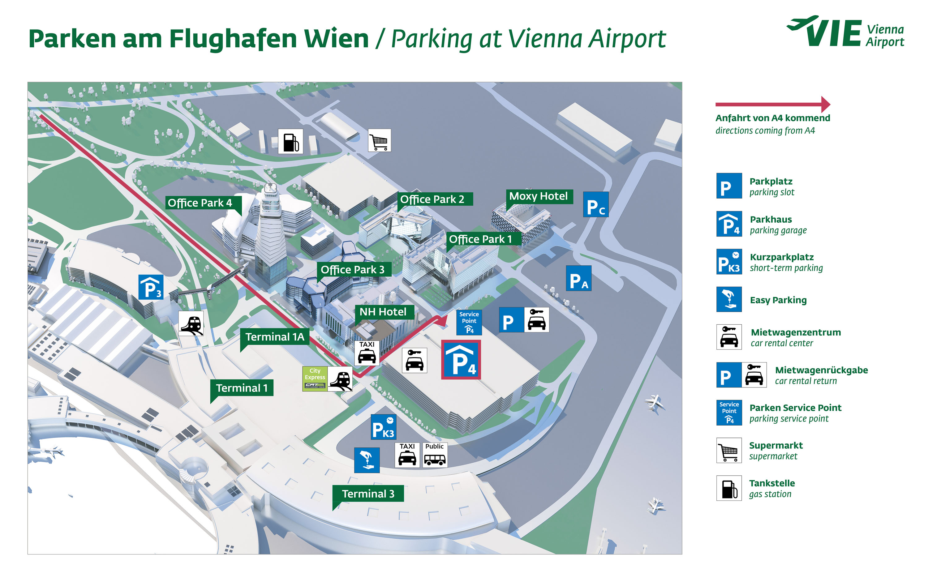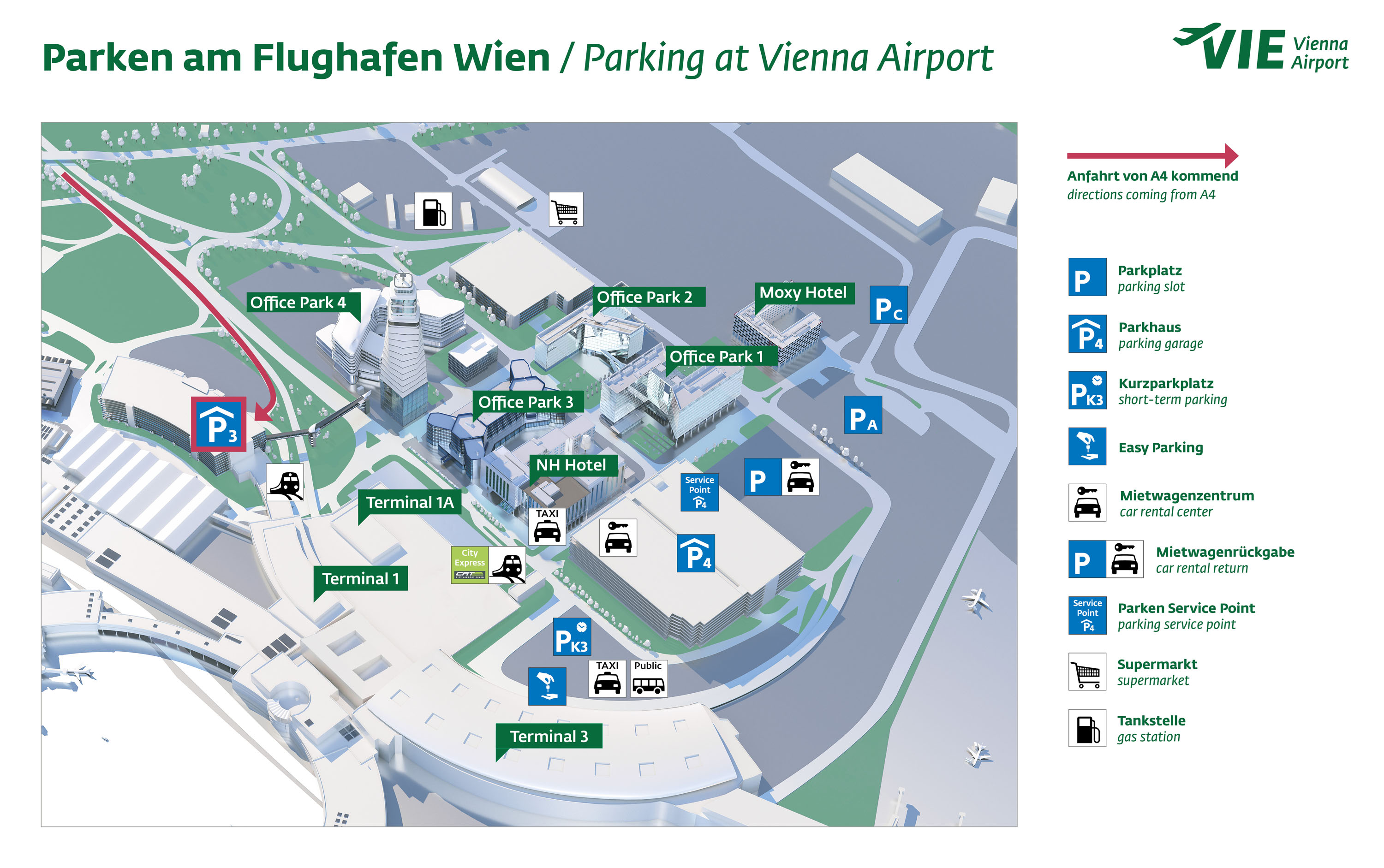 Krátkodobé parkovanie na letisku Schwechat je ideálne pre krátke návštevy. Nachádza sa blízko terminálov, čo umožňuje pohodlný prístup k letisku.
